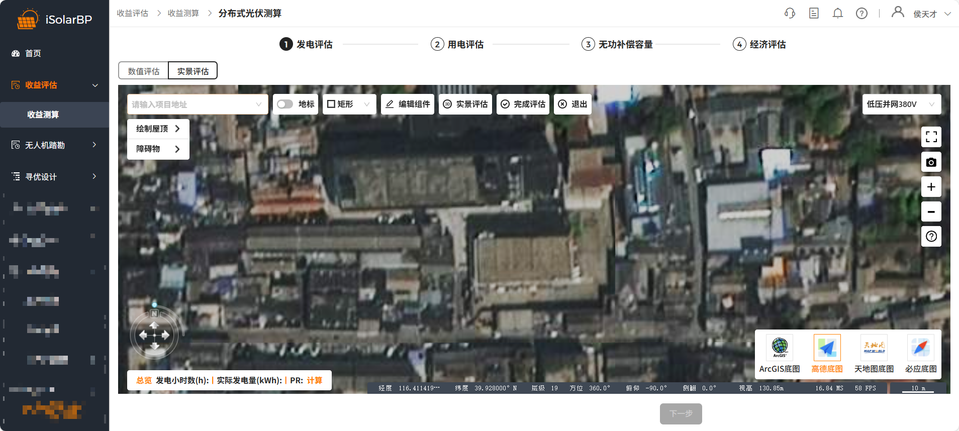 发电评估通过数值评估或实景评估得到装机容量、光伏发电量、首年发电小时数等信息
