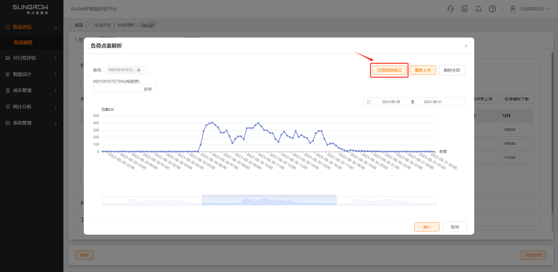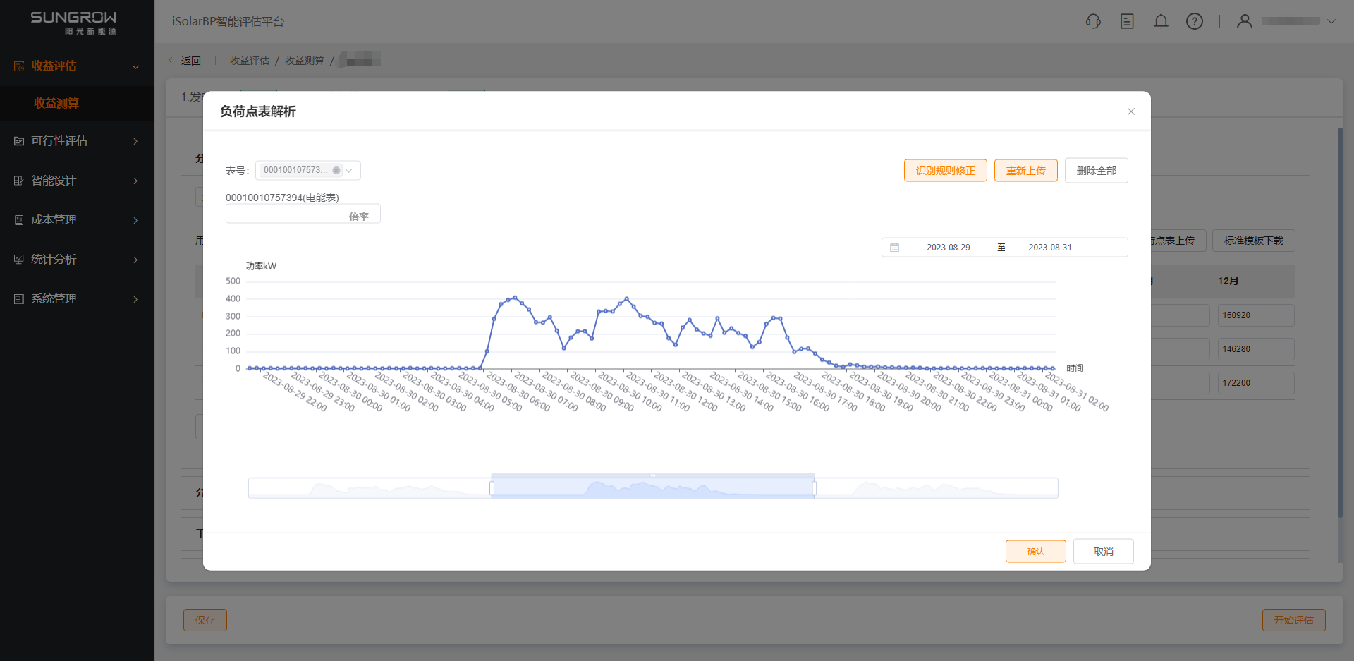 - 负荷点表识别解析成功后,弹出弹窗展示识别解析结果