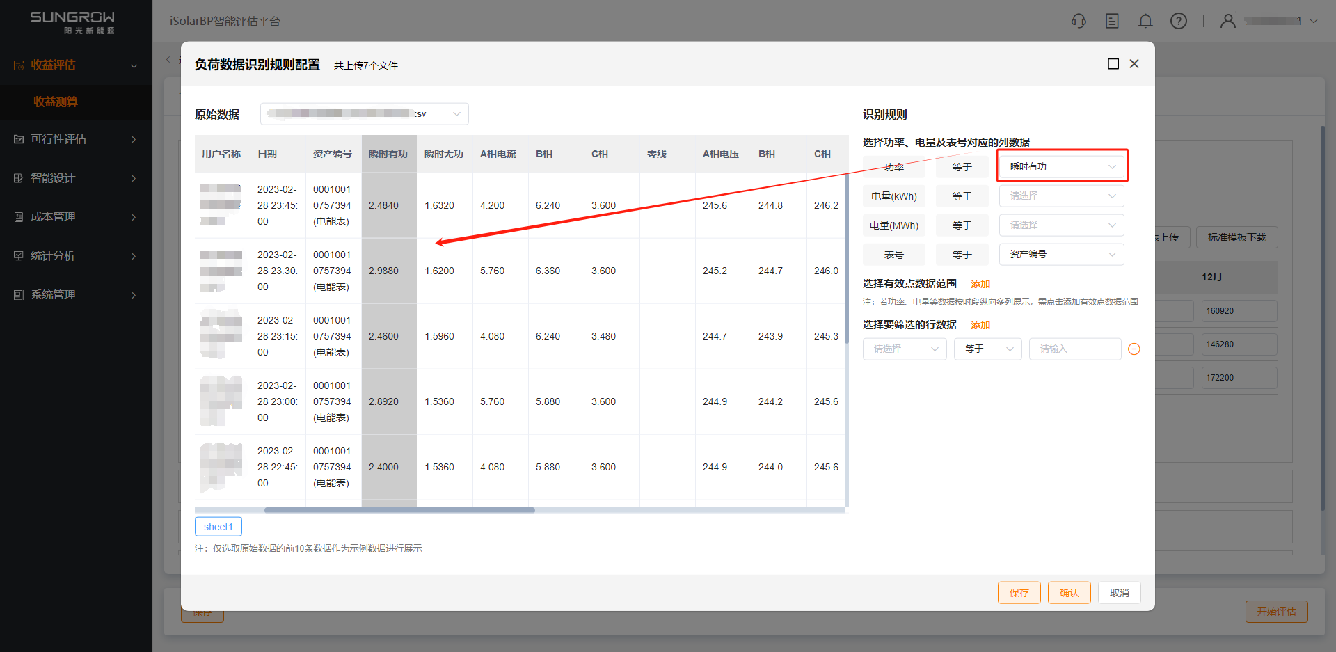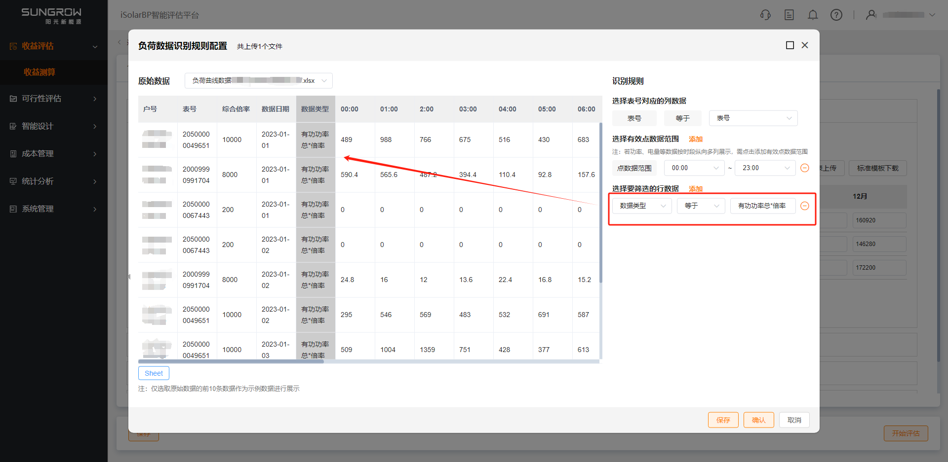 ii 选择功率、电量、表号对应的列数据,选择后按所选列数据进行负荷还原解析