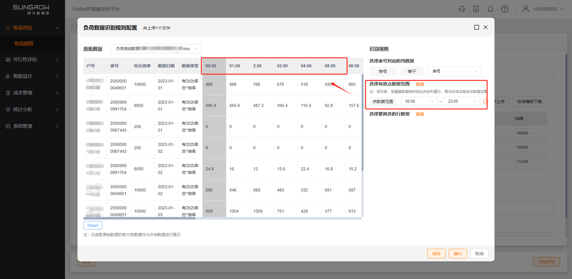 iii 若存在功率、电量数据按时段横向多列展示时,支持添加有效点数据范围进行识别解析