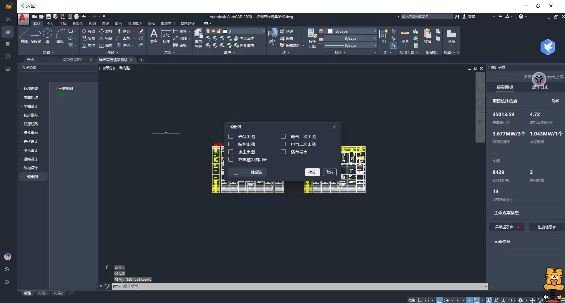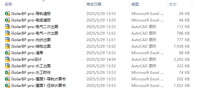 - 清单导出包含:导轨计算书、压块计算书、电缆清册、清单、导轨清册、水工附件在内的全部文件