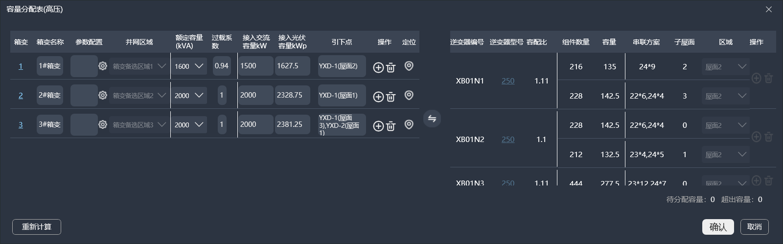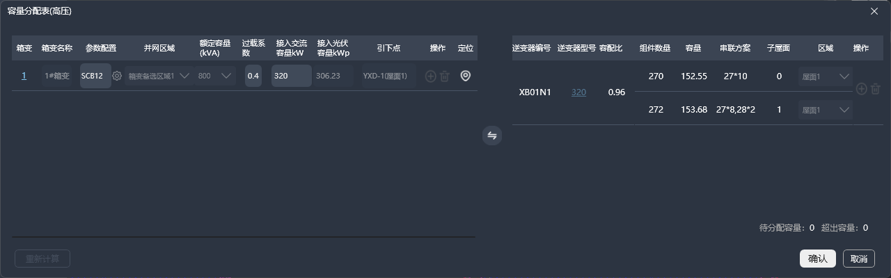| 逆变器型号 | 点击下拉框选择该初步排布的逆变器类型,不同电压等级逆变器不可同时选择 |