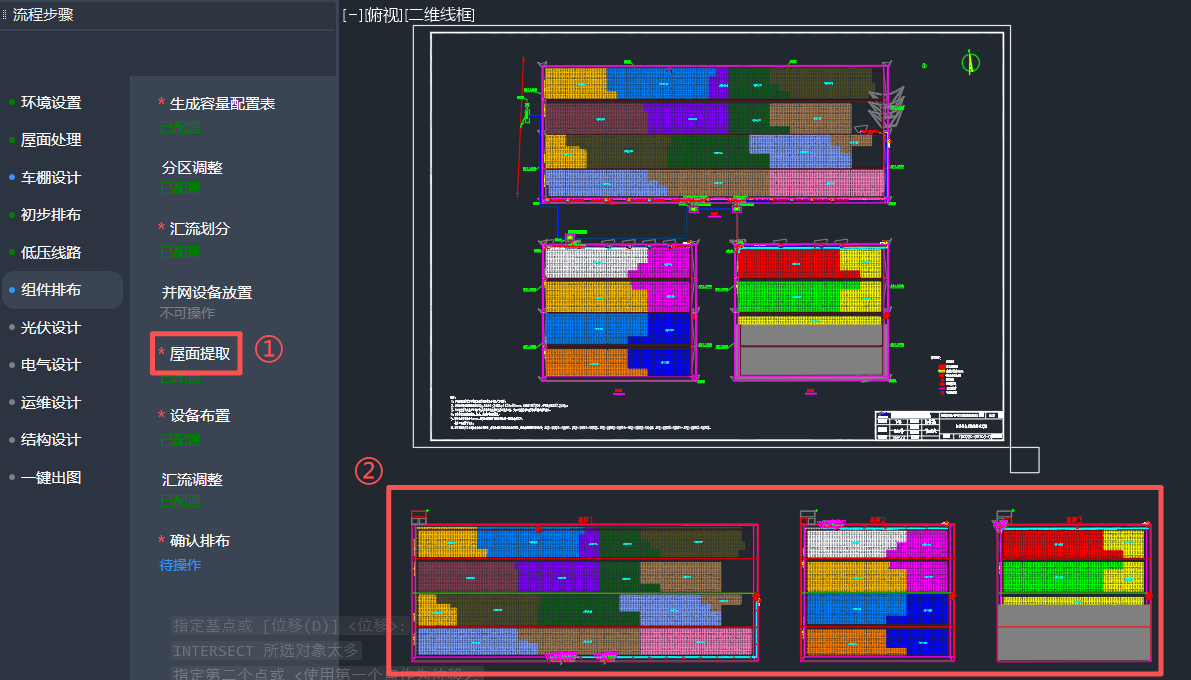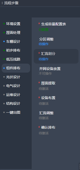 “初步排布”用于用户对所选屋面进行组件初步排布