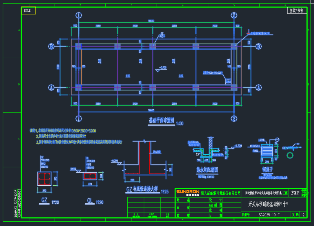 软件内置了阳光高压方案下的各设备常见基础尺寸,以及条形基础、筏形基础两种类型