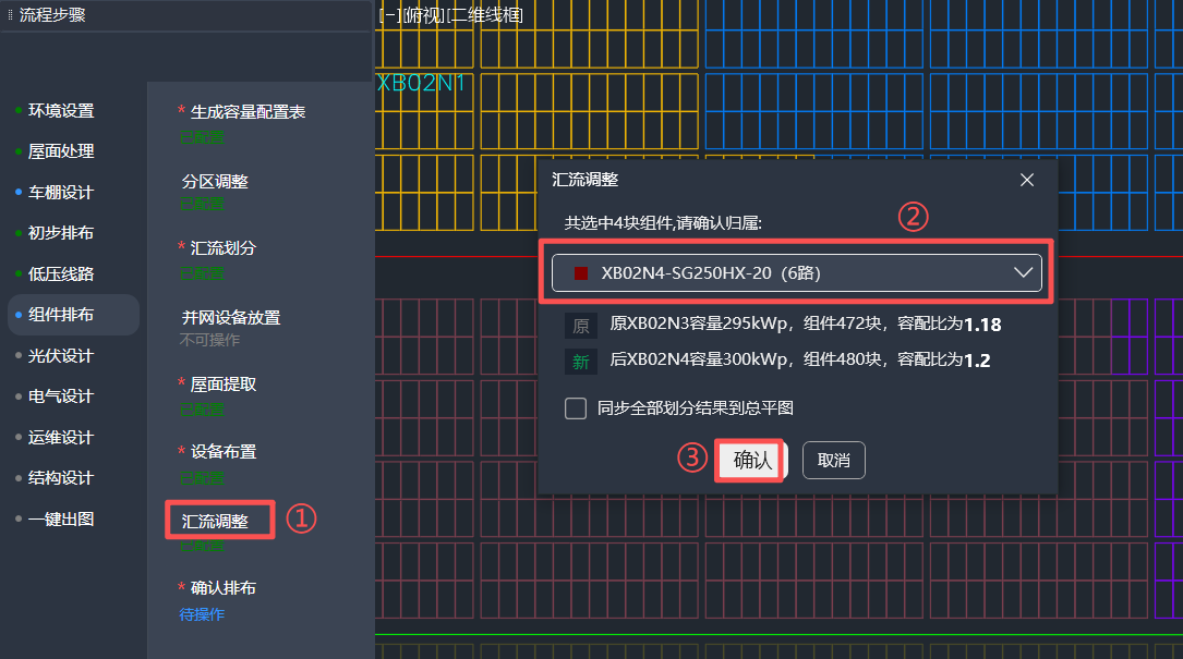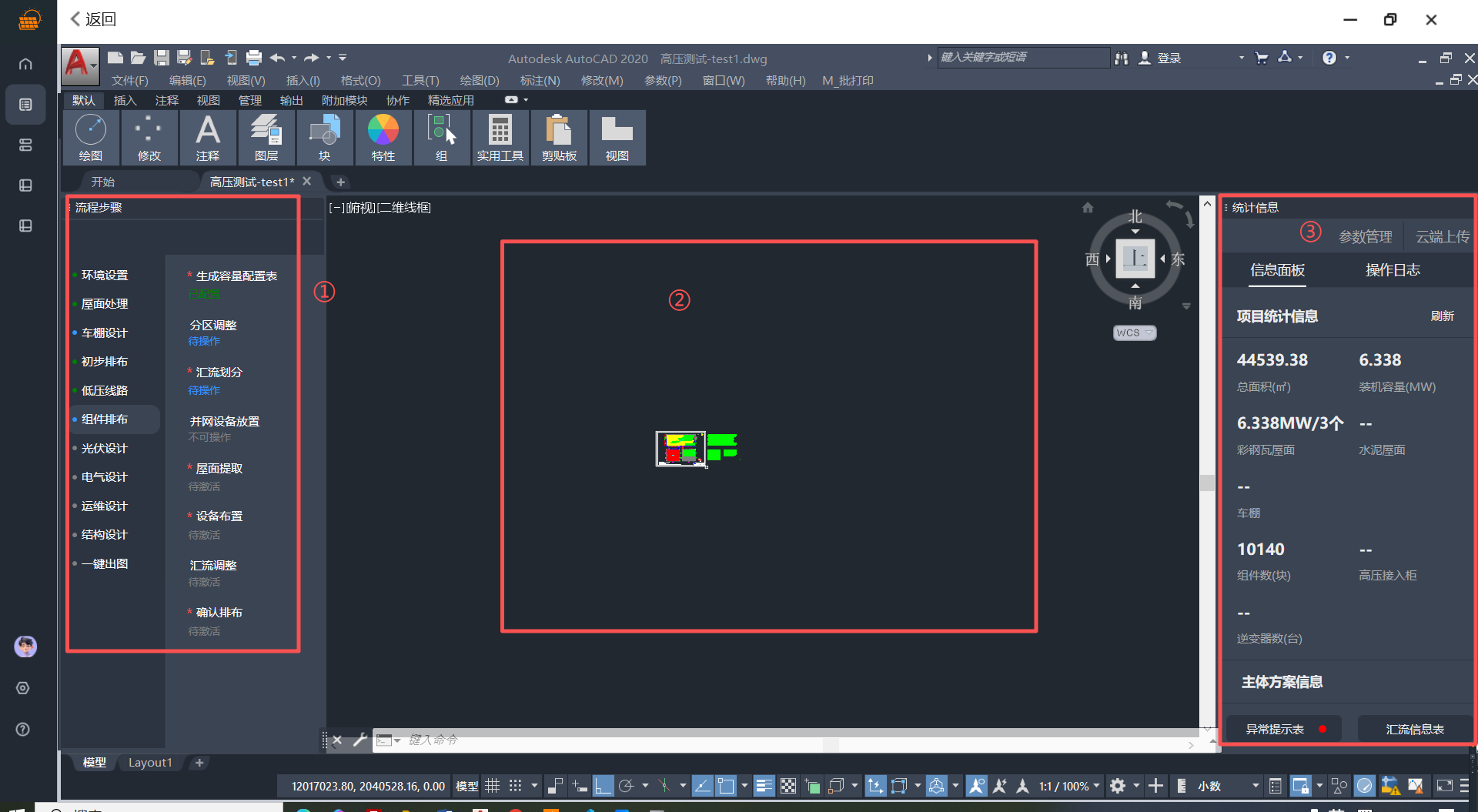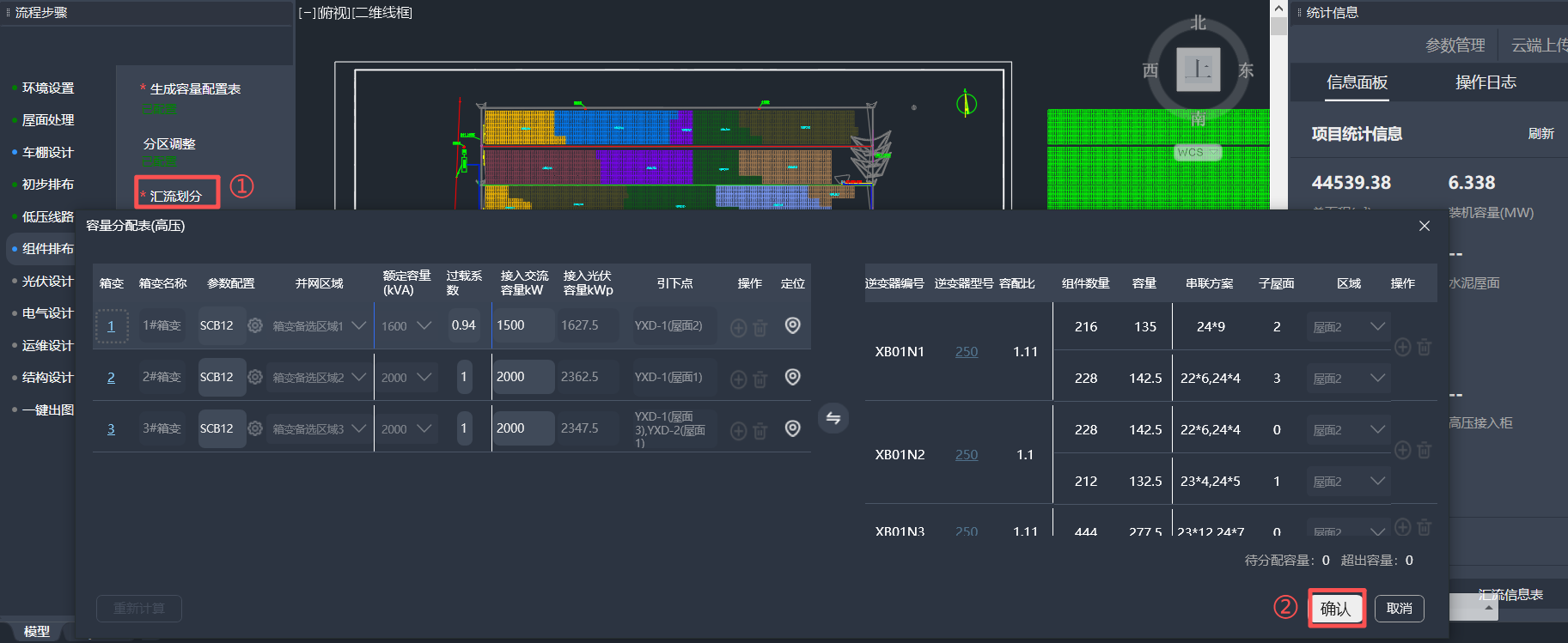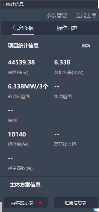 - 统计信息:统计项目的总面积、总装机容量、总组件数量等信息