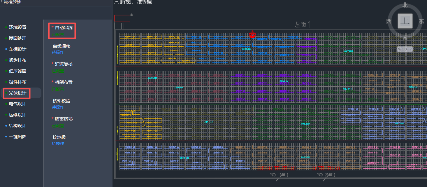 - 光伏出图包含:光伏设计总说明、发电单元系统原理图、组件排布图、组件串线图、桥架布置图、总平面图