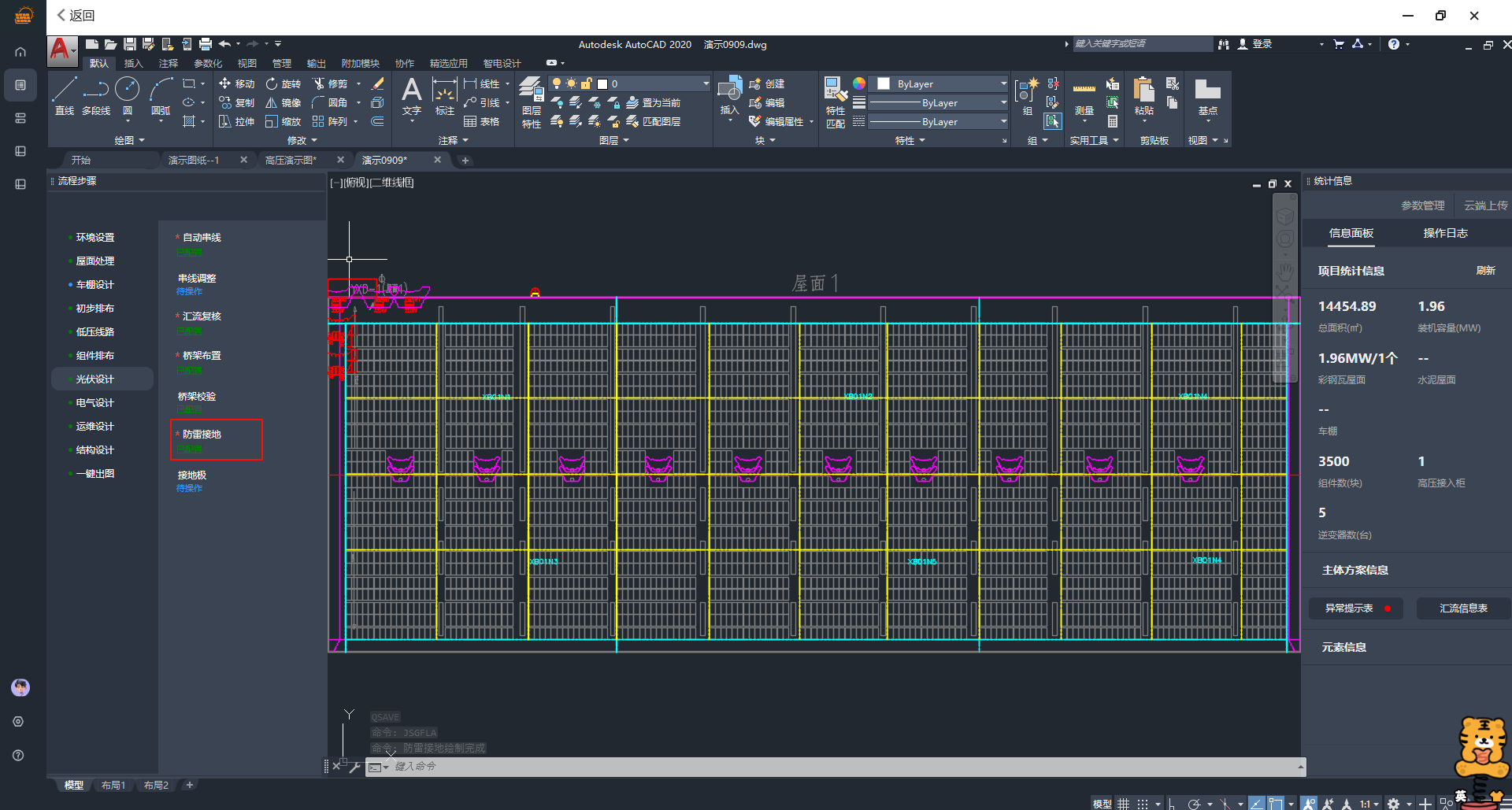 - 点击防雷接地按钮,系统自动绘制防雷接地结果