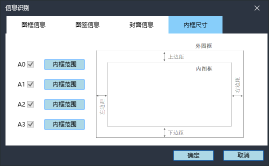 需要分别框选A0,A1,A2,A3的内框范围,框选完成后点击确定即可