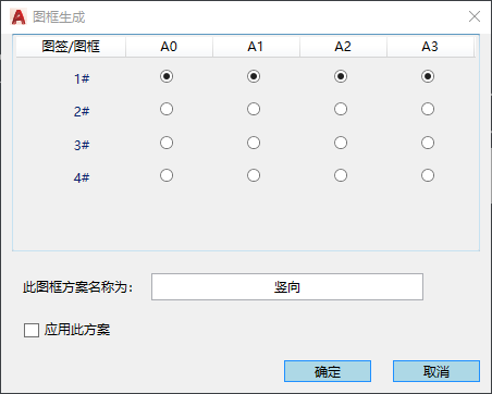 - 勾选应用此方案后点击确定,后续出图将直接应用此图框方案