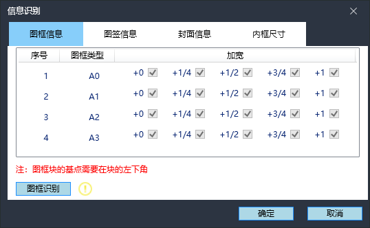 - 上传的图框需包含A3~A0,及各自的+1/4,+1/2,+3/4,+1,方便匹配出合适大小的图框
