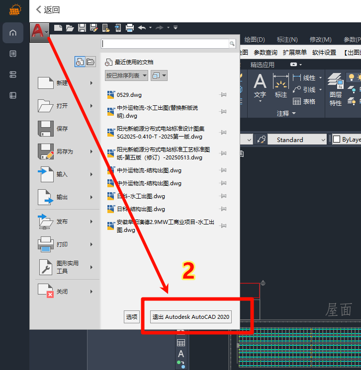 新建,编辑,应用图框案例时,需无正在设计的项目时才可进行。如果有项目正在设计,需保存项目并退出cad,具体操作如下图: