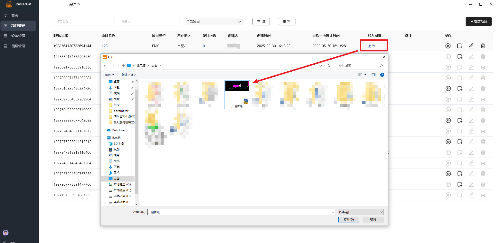 - 若已收资项目厂区图纸,可点击“导入图纸——上传”按钮,即可导入厂区图纸进行设计