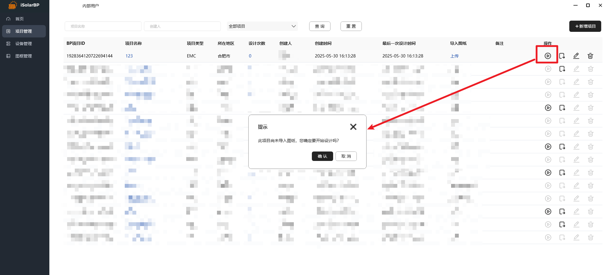 - 若无厂区图纸,可点击项目列表的操作列的“开始设计”