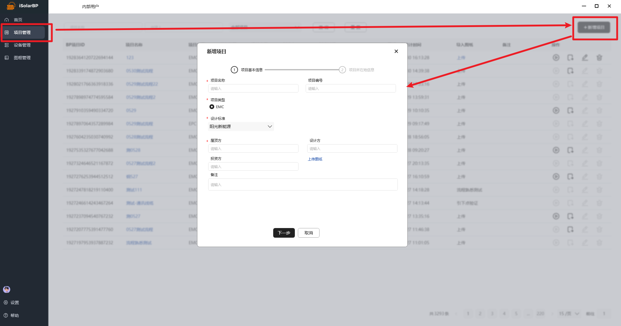 - 输入“项目基本信息”,必填信息包括“项目名称”、“屋顶方”等