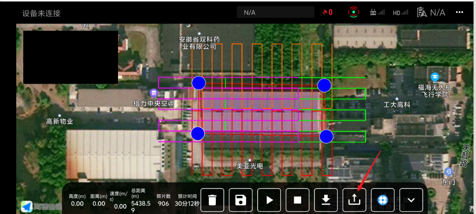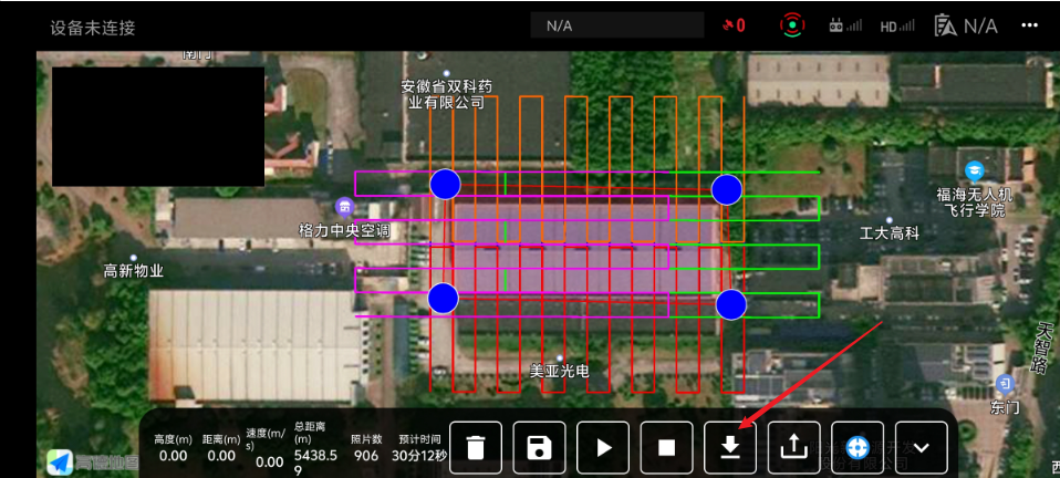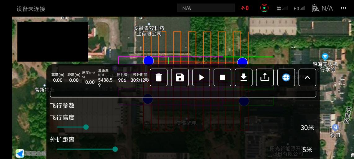 设置完成后点击保存按钮,航线及飞行参数将保存